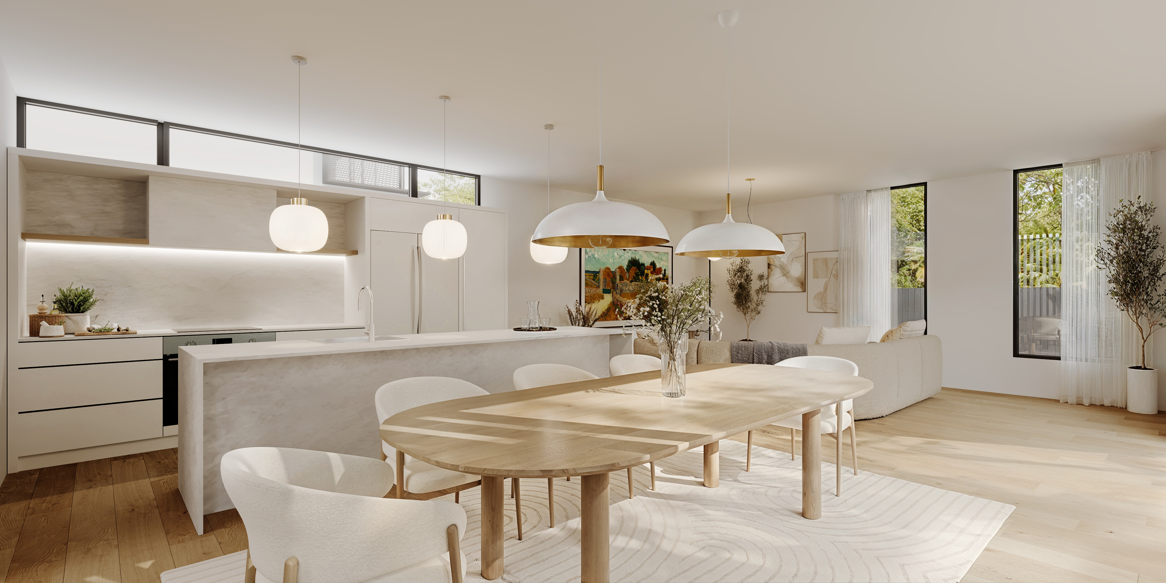 This development was designed to stand apart. At its heart is a stunning open-plan designer kitchen, dining area and lounge that seamlessly connect to a north-facing deck – perfect for outdoor living.